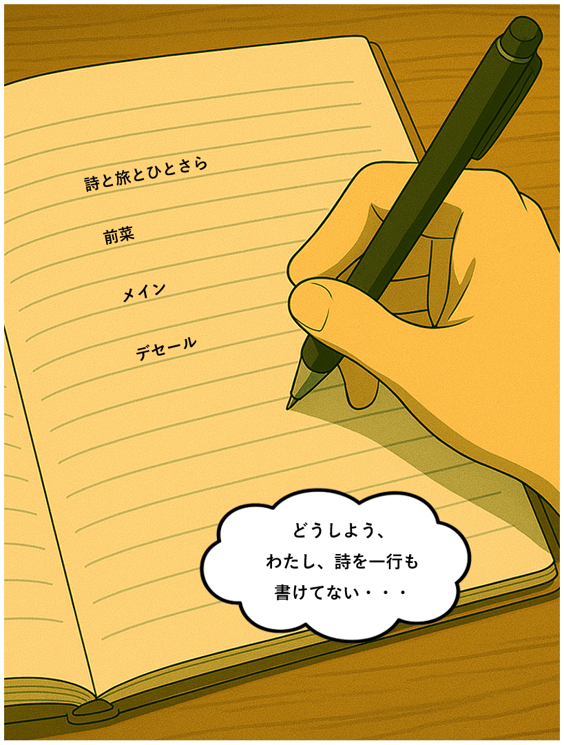 しかし、言葉が降りてこない。それでも、旅立ちの時は迫っていた。